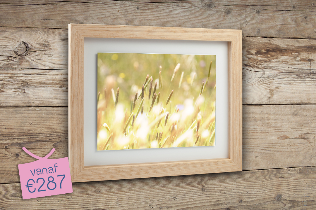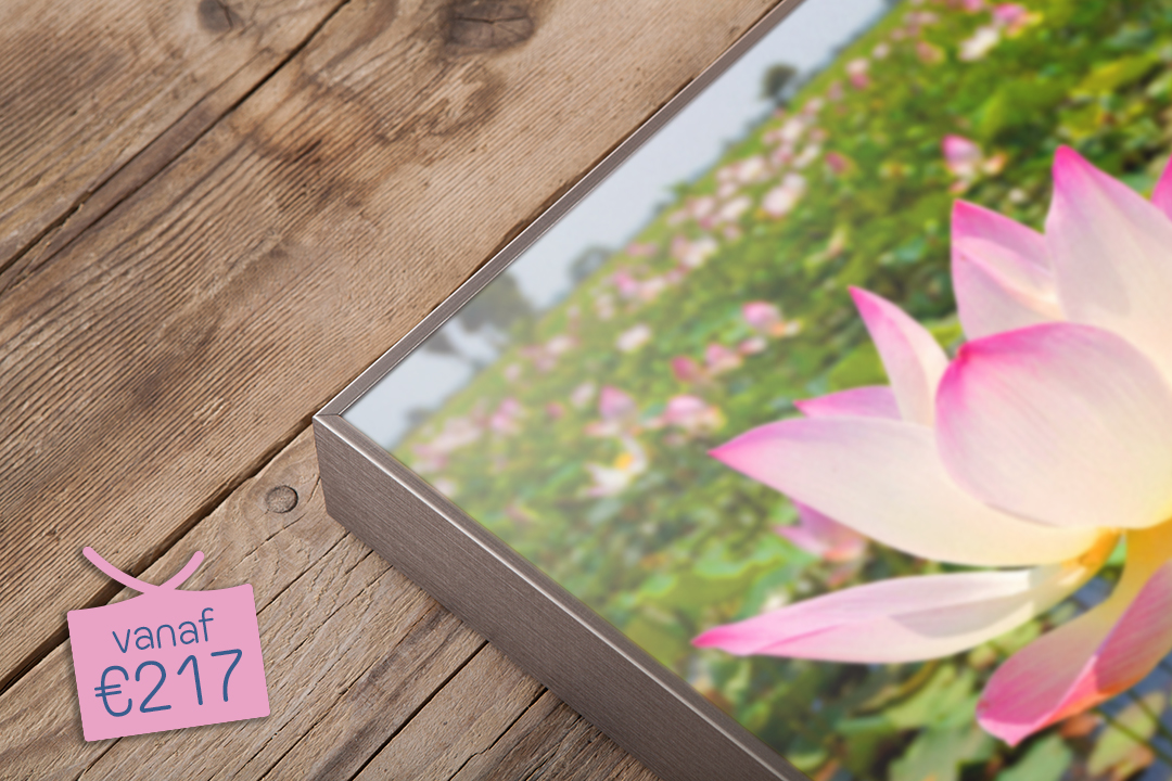 De perfecte keuze als je een indrukwekkende, zwevende presentatie wilt creëren. De Dibond-print (met een keuze uit de afwerkingen: metallic print of brushed RVS-look) wordt gemonteerd in een 'baklijst'. De print ligt iets verzonken, waardoor het lijkt alsof de afbeelding los van de lijst zweeft. Zo geef je een afdruk op dibond net dat beetje extra elegantie mee.