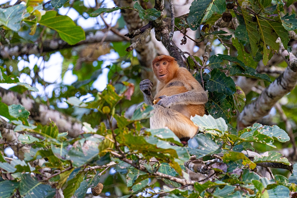 • Ik kijk: Naar een aap die me aankijkt, een blad eet of slingert door de bomen.